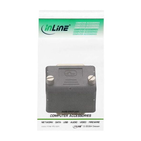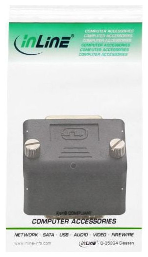 InLine DVI-I Γωνιακός προσαρμογέας 90 μοιρών ψηφιακός + αναλογικός 24+5 αρσενικό σε θηλυκό - μαύρο Ο προσαρμογέας γωνίας σάς επιτρέπει να συνδέσετε ένα καλώδιο DVI σε μια κάρτα γραφικών σε ένα μέρος όπου δεν υπάρχει χώρος για ένα προεξέχον ευθύ καλώδιο. Ένα πολύ χρήσιμο πράγμα κατά την οργάνωση καλωδίων σε σετ Media Center ή σε υπολογιστή DVI-I 24+5 αρσενικό έως DVI-I 24+5 θηλυκό Επιχρυσωμένες άκρες για μείωση των παρεμβολών με γωνία 90 μοιρών Κατάλληλο για αναλογική και ψηφιακή μετάδοση Γρήγορες βίδες για. τοποθέτηση του προσαρμογέα Διαστάσεις: περίπου 38 cm (αρσενική πλευρά) x 34 mm (θηλυκή πλευρά) x 40 mm (πλάτος)Τύπος συσκευασίας: blister{Χρώμα} μαύρο . {Χρώμα} μαύρο . {Χρώμα} μαύρο . {Επιχρυσωμένο βύσμα} Ναι. {Επιχρυσωμένο βύσμα} Ναι. {Επιχρυσωμένο βύσμα} Ναι. {Angle Plug} Ναι. {Angle Plug} Ναι. {Angle Plug} Ναι. {Τύπος βυσμάτων} Βύσμα - Πρίζα. {Τύπος βυσμάτων} Βύσμα - Πρίζα. {Τύπος βυσμάτων} Βύσμα - Πρίζα. {Τύπος σύνδεσης} DVI-I - DVI-I . {Τύπος σύνδεσης} DVI-I - DVI-I . {Τύπος σύνδεσης} DVI-I - DVI-I