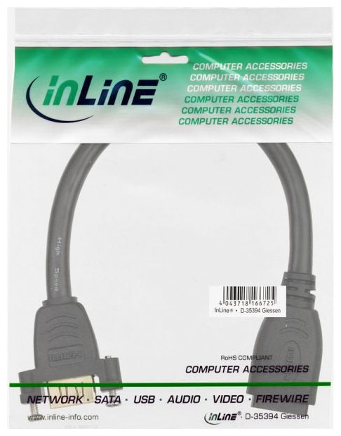 Προσαρμογέας HDMI InLine Τύπος A σε Θηλυκό με φλάντζα - επίχρυσοι ακροδέκτες - Υποστήριξη 4K Προσαρμογέας 0,2mHDMI για ευκολότερη εγκατάσταση Υποδοχή υποδοχής HDMI γυναίκα σε HDMI, επίχρυσα τερματικά Συμβατότητα με HDMI High Speed με Ethernet Άνοιγμα σε υποδοχή HDMI περίπου 8x18mm, τρύπα απόσταση: 25mm Μήκος σπειρώματος 15mm, βίδες #4-401:1 εκχώρηση Συμβατότητα 4K2K @30 HzΧρώμα: μαύρο Μήκος: περίπου 0,2 m{Γωνιακό βύσμα} Αρ. {Γωνιακό βύσμα} Αρ. {Χρώμα} μαύρο . {Χρώμα} μαύρο . {Επιχρυσωμένο βύσμα} Ναι. {Επιχρυσωμένο βύσμα} Ναι. {Τύπος σύνδεσης} HDMI - HDMI . {Τύπος σύνδεσης} HDMI - HDMI . {Τύπος βυσμάτων} Πρίζα - Πρίζα . {Τύπος βυσμάτων} Πρίζα - Πρίζα