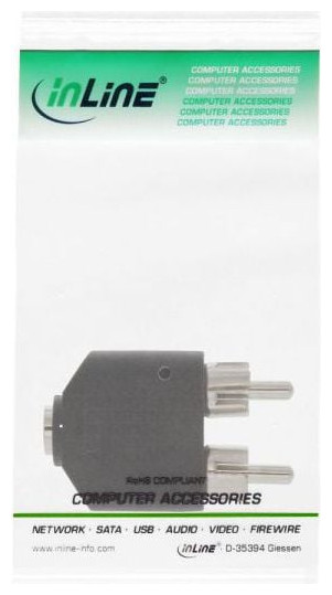 InLine Audio Adapter 3,5mm jack θηλυκό Stereo - 2x RCA αρσενικό Κωδικός EAN: 4043718080489 Κωδικός κατασκευαστή: 99343{Επιχρυσωμένο βύσμα} Αρ. {Επιχρυσωμένο βύσμα} Αρ. {Επιχρυσωμένο βύσμα} Αρ. {Γωνιακό βύσμα} Αρ. {Γωνιακό βύσμα} Αρ. {Γωνιακό βύσμα} Αρ. {Χρώμα} μαύρο . {Χρώμα} μαύρο . {Χρώμα} μαύρο . {Τύπος σύνδεσης} Jack 3,5mm - RCA (Cinch) x2. {Τύπος σύνδεσης} Jack 3,5mm - RCA (Cinch) x2. {Τύπος σύνδεσης} Jack 3,5mm - RCA (Cinch) x2. {Τύπος βυσμάτων} Βύσμα - Πρίζα. {Τύπος βυσμάτων} Βύσμα - Πρίζα. {Τύπος βυσμάτων} Βύσμα - Πρίζα
