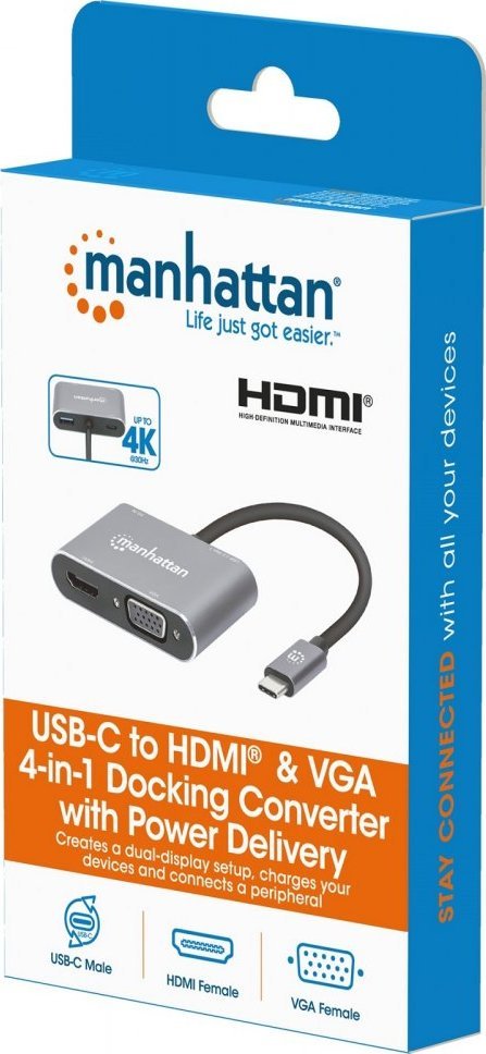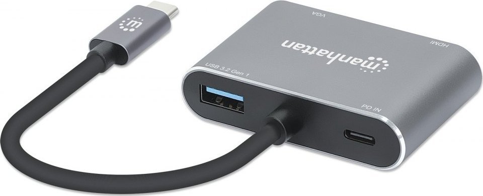 Προσαρμογέας AV Manhattan Manhattan Hub Προσαρμογέας USB-C 3.2 σε 4K HDMI VGA USB-A USB-C PD 87W
