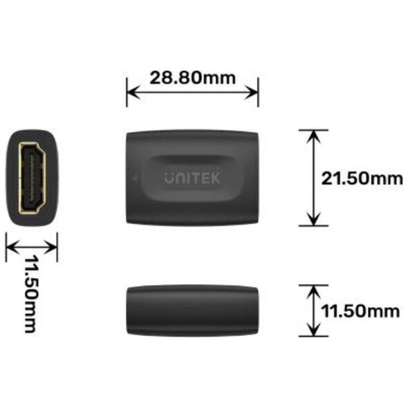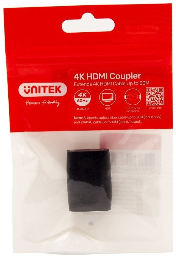Η υποδοχή Unitek A1013BK σας επιτρέπει να συνδέσετε εύκολα δύο καλώδια HDMI, αυξάνοντας την εμβέλειά τους. Είναι μια τέλεια λύση στο πρόβλημα μιας οθόνης που είναι πολύ μακριά από τη συσκευή ή ενός χώρου που δεν είναι κατάλληλος για μια απλή, βολική σύνδεση.