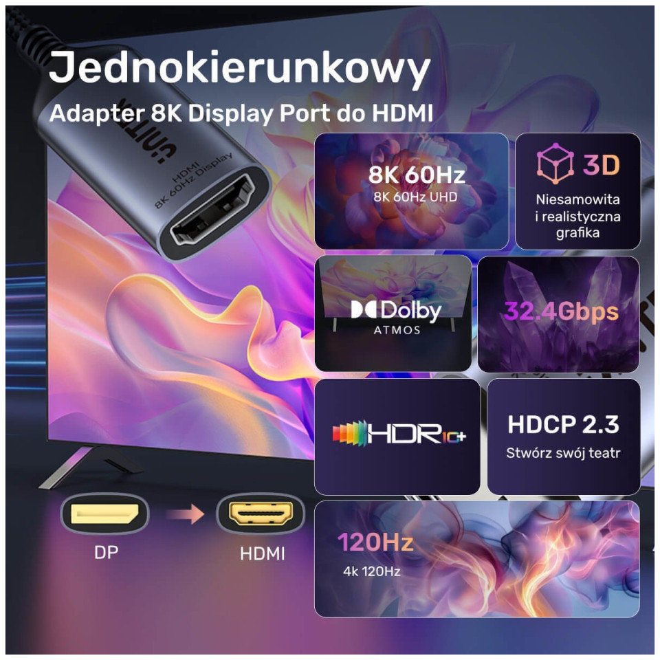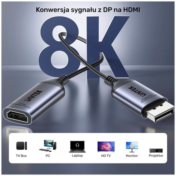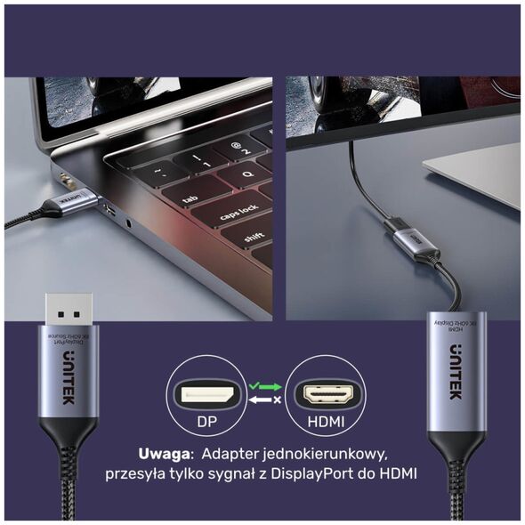 Προσαρμογέας AV Unitek DisplayPort - HDMI γκρι (V1611A01)