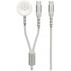 Προσαρμογέας AV Swissten Ασύρματος Φορτιστής 2Σε1 Για Apple Watch Και USB-C, USB-C 1.2 M Λευκό