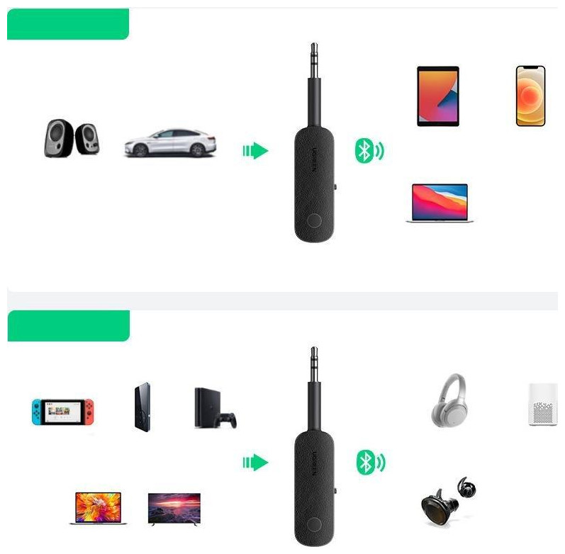 Adapter bluetooth Ugreen Odbiornik nadajnik Bluetooth Mini Jack 3,5 mm czarny