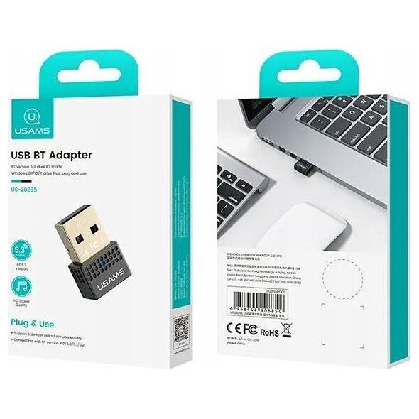USAMS Bluetooth USB Adapter μαύρο ZB285SPQ01 (US-ZB285)USAMS Bluetooth Adapter US-ZB285 Ο προσαρμογέας Bluetooth USAMS US-ZB285 είναι ένα μικρό gadget με μεγάλες δυνατότητες, που επιτρέπει την ασύρματη επικοινωνία μεταξύ διαφόρων συσκευών. Η χρήση του είναι πρακτικά απεριόριστη, γεγονός που το καθιστά αναντικατάστατο αξεσουάρ για άτομα που εκτιμούν την άνεση και την ελευθερία στην καθημερινή χρήση των ηλεκτρονικών. Ο προσαρμογέας χρησιμοποιεί τεχνολογία Bluetooth 5.3. Η προηγμένη τεχνολογία εγγυάται ταχύτερη σύνδεση από το BT 5.2, εξουδετερώνει τις παρεμβολές πιο έντονα και προκαλεί πιο αργή κατανάλωση μπαταρίας. Ο προσαρμογέας συνδέεται με τη συσκευή στόχο σε απόσταση έως και 20 m, κάτι που σίγουρα θα εκτιμηθεί από οποιονδήποτε είναι πολύ κινητό άτομο. Ο προσαρμογέας USAMS προσφέρει ήχο υψηλής ποιότητας, κάνοντας την ακρόαση μουσικής από τη συσκευή-στόχο μια απόλυτη απόλαυση. Η συσκευή υποστηρίζει έως και πέντε συζευγμένες συσκευές ταυτόχρονα χωρίς απώλεια σταθερότητας και ομαλότητας. Η λειτουργία είναι πολύ απλή - απλώς συνδέστε τον προσαρμογέα στη θύρα USB και αυτό είναι! Τεχνικά δεδομένα Μάρκα USAMS Τύπος Bluetooth Προσαρμογέας Υλικό Κράμα αλουμινίου/ABS Έκδοση Bluetooth 5.3 Συμβατότητα Συσκευές Bluetooth v. 4.0, 5.0, 5.1, 5.2 Πλάτος: Ύψος συστοιχίας: Βάθος συστοιχίας: Συστοιχία