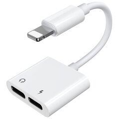 Adapter USB Joyroom Lightning - Jack 3.5mm + Lightning Biały (6956116718978)