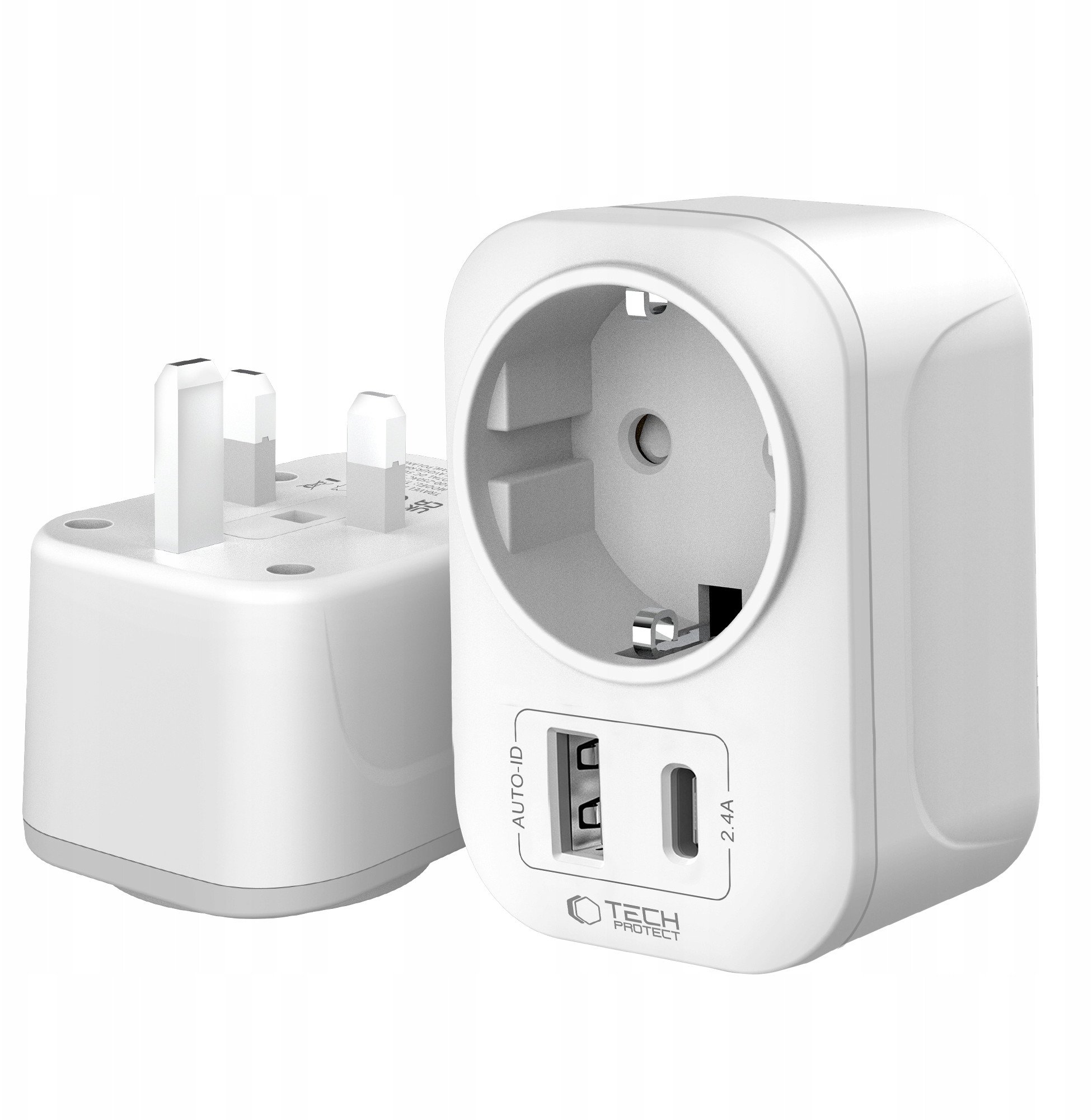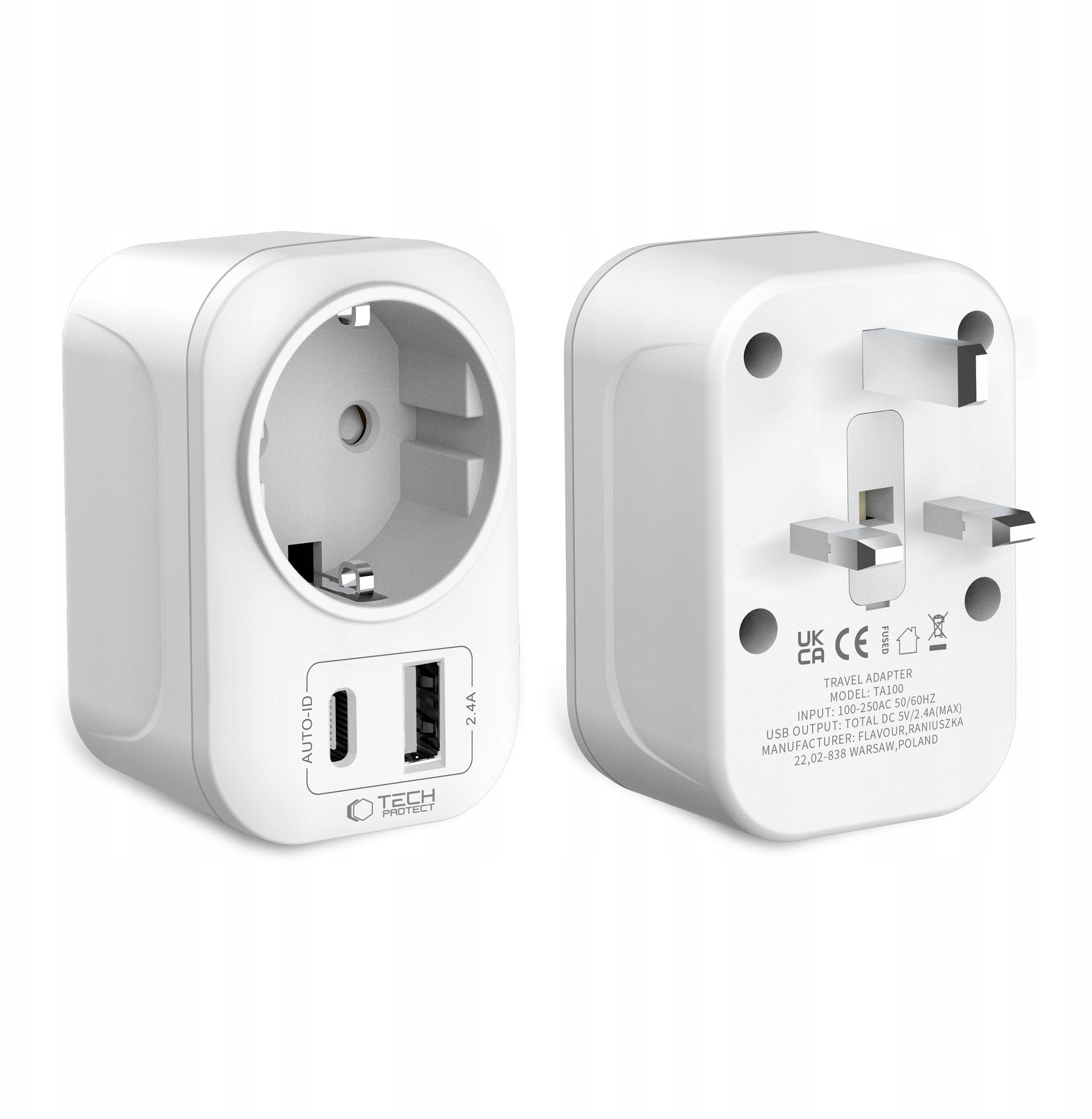 Adapter / przejściówka Tech-Protect TA100 Travel Adapter UK / EU White