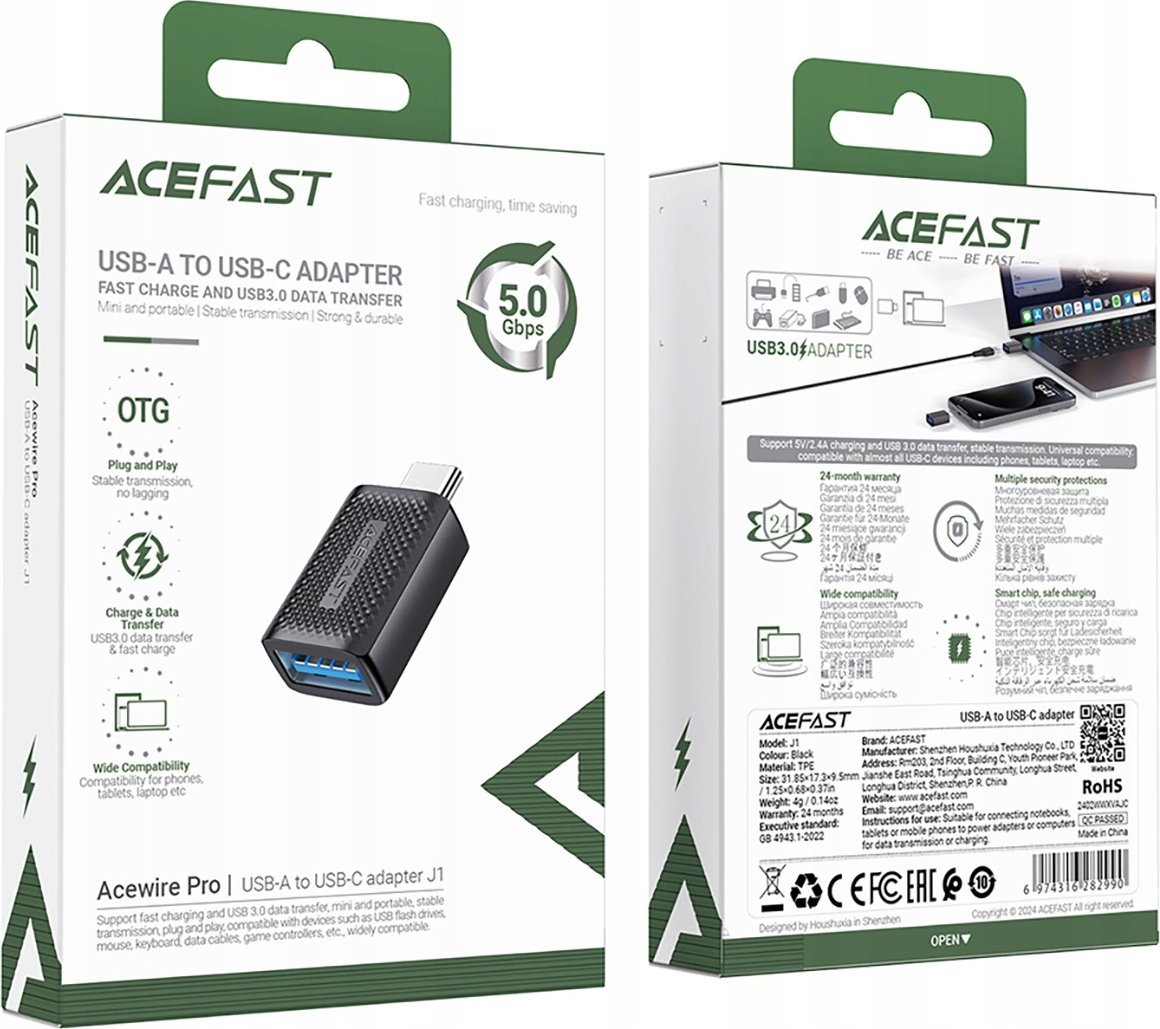 The Acefast J1 USB-A to USB-C Adapter is a high-quality product designed for convenient and reliable device handling. With its compact design and lightweight, you can take it with you almost anywhere. It also allows for charging devices and transferring files.