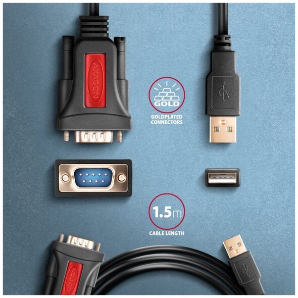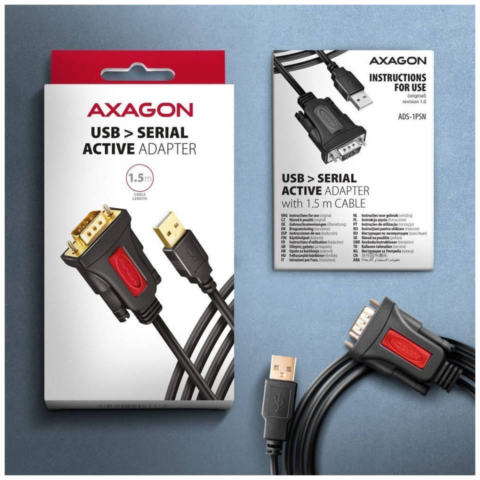 Axagon ADS-1PSN Προσαρμογέας USB USB 2.0 > Σειριακή θύρα RS-232, καλώδιο 1,5 m, Prolific chip