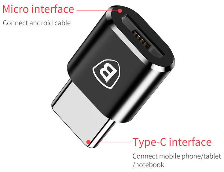 Ο προσαρμογέας Baseus Micro USB σε USB-C Type C είναι ένα πρωτότυπο προϊόν της Baseus. Είναι κατασκευασμένο από αλουμίνιο χωρίς σκουριά σε πολύ συμπαγές και πρακτικό στυλ. Ο προσαρμογέας σάς επιτρέπει να μεταφέρετε αρχεία, να συγχρονίζετε συσκευές και να φορτίζετε (MAX 2.4A). Υποδοχή USB