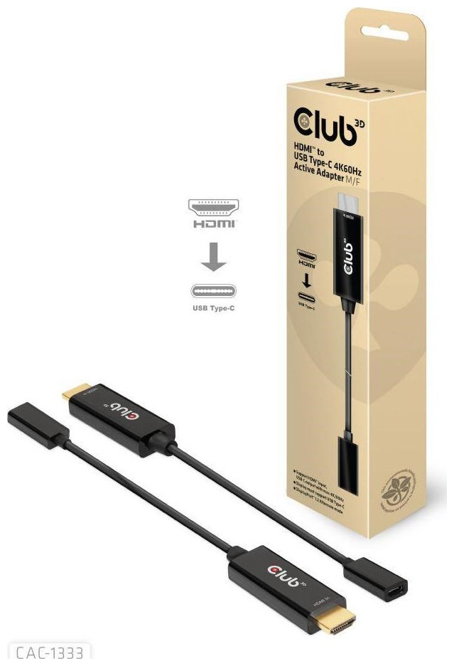 Το Club 3D CAC-1333 είναι ένας προσαρμογέας HDMI™ σε USB-C που σας επιτρέπει να μεταδώσετε ένα σήμα από μια πηγή HDMI™ (φορητός υπολογιστής, tablet, υπολογιστής κ.λπ.) σε συσκευές οθόνης USB-C (τηλεόραση, οθόνη, προβολέας κ.λπ. .) μέσω καλωδίου C M /M. Αυτός ο προσαρμογέας είναι μονής κατεύθυνσης, λειτουργεί μόνο από συσκευή πηγής HDMI{Angle Plug} Αρ. {Χρώμα} Μαύρο. {Πρότυπο υποδοχής USB} 3.0 . {Τύπος σύνδεσης} USB-C - HDMI. {Τύπος βυσμάτων} Πρίζα - Πρίζα . {Type} Προσαρμογέας . {Application} RTV . {Application} IT