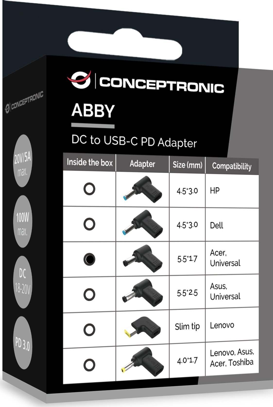 Προσαρμογέας USB Conceptronic CONCEPTRONIC Προσαρμογέας USB-C -> DC, Acer 5.5x1.7mm 18-20V sw