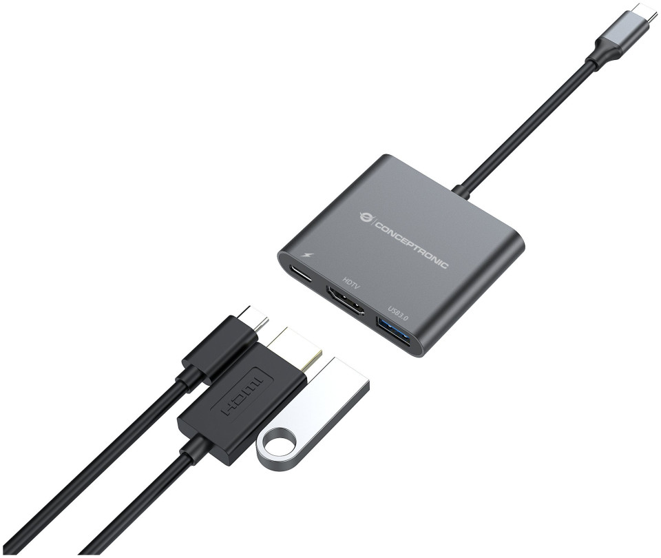 Προσαρμογέας USB Conceptronic CONCEPTRONIC Προσαρμογέας USB-C -> HDMI,2xUSB3.0,PD,SD 0.15m