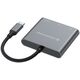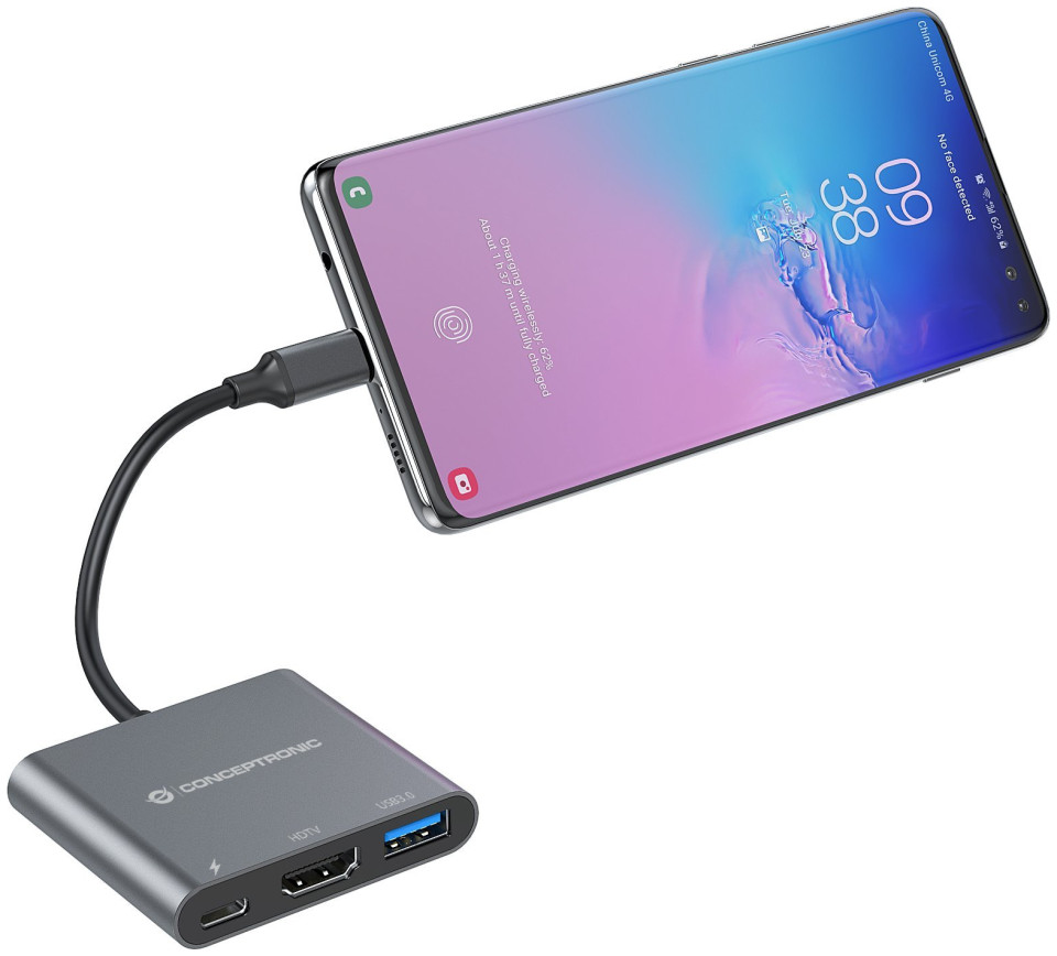 Conceptronic DONN01G. Interfejs hosta: USB 3.2 Gen 1 (3.1 Gen 1) Type-C, Interfejsy hub: HDMI, USB 3.2 Gen 1 (3.1 Gen 1) Type-A, USB 3.2 Gen 1 (3.1 Gen 1) Type-C. Realna szybkość przesyłania danych: 5000 Mbit/s, Maksymalna częstotliwość odświeżania: 30 Hz, Maksymalna rozdzielczość (HDMI): 4096 x 2160 px. Typ zasilacza: USB. Obsługiwane systemy operacyjne Windows: Windows 10, Windows 10 Education, Windows 10 Education x64, Windows 10 Enterprise, Windows 10..., Obsługiwane systemy operacyjne Mac: Mac OS X 10.10 Yosemite, Mac OS X 10.11 El Capitan, Mac OS X 10.12 Sierra, Mac OS X 10.13 High.... Szerokość produktu: 58 mm, Głębokość produktu: 52 mm, Wysokość produktu: 12 mm