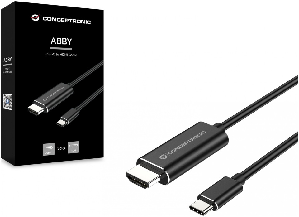 Conceptronic ABBY04B. Μήκος καλωδίου: 2 m, Υποδοχή 1: USB Type-C, Υποδοχή 2: HDMI. Βάρος προϊόντος: 44,5 g, Πλάτος προϊόντος: 20,3 mm, Βάθος προϊόντος: 9,24 mm. Ποσότητα ανά συσκευασία: 1 τεμ., Πλάτος συσκευασίας: 23 mm, Βάθος συσκευασίας: 85 mm. Πλάτος κουτιού χύδην (εξωτερικό): 290 mm, Μήκος κύριου κουτιού (εξωτερικό): 250 mm, Ύψος κύριου κουτιού (εξωτερικό): 440 mm