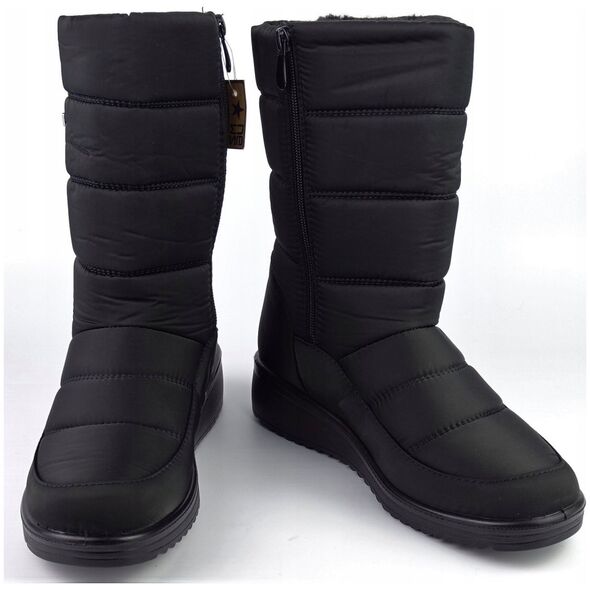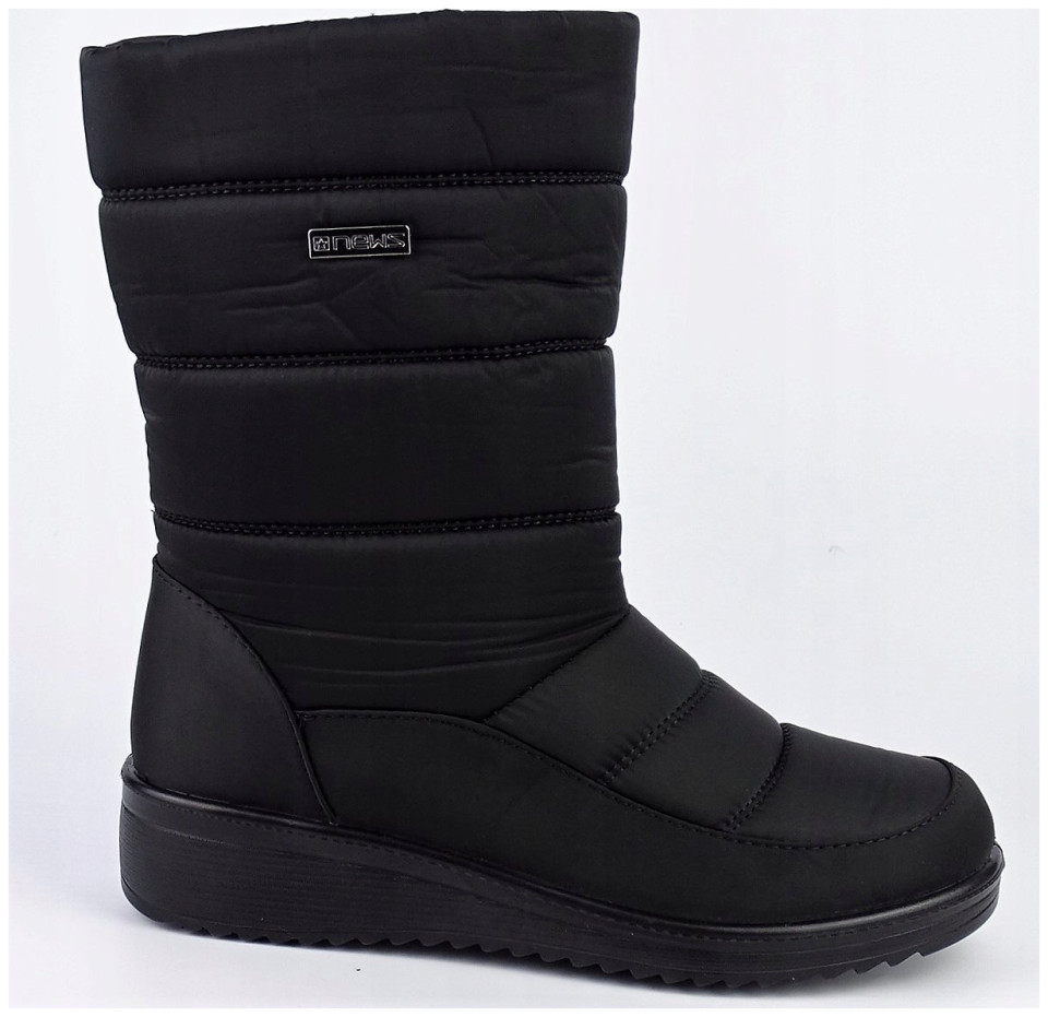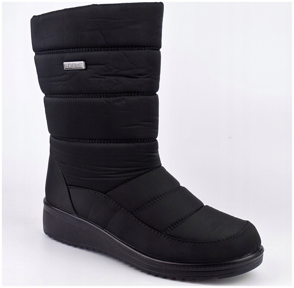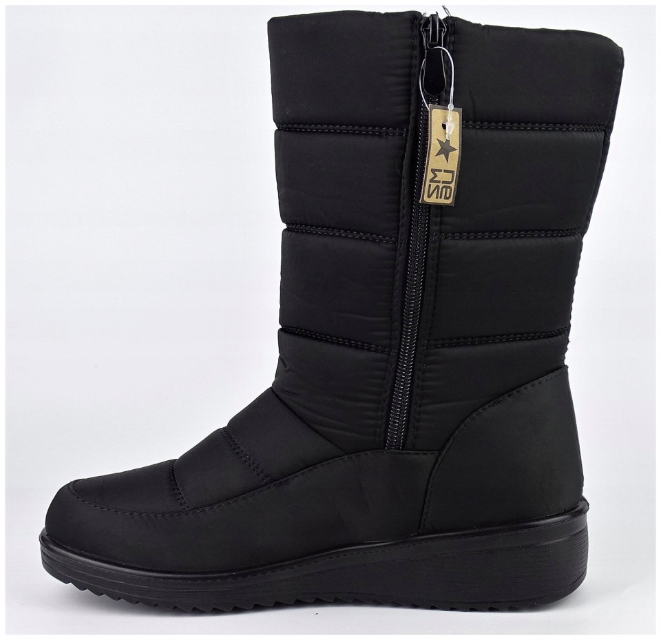 Wyższe botki damskie marki NEWS w kolorze czarnym Materiał zewnętrzny to miękki ortalion Wnętrze oraz wkładka ocieplone miękkim grubym futerkiem Buty zapinane są na zamek od strony zewnętrznej Gruba, elastyczna, stabilna podeszwa dobrze izoluje od podłoża oraz daje komfort podczas chodzenia Buty są starannie wykonane z wysoko gatunkowych materiałów. długość wkładki 25,5 cm Kod produktu: 22SN26-5028 Kolor: CZARNY Materiał zewnętrzny :Ortalion Ocieplenie: Tak Materiał wewnętrzny: Futerko Wkładka :Futerko Wysokość cholewki : 20 cm Wysokość podeszwy pod piętą: 4 cm. Wysokość podeszwy pod palcami: 1,8 cm Zapięcie: Zamek Długość wkładki w poszczególnych rozmiarach : 36 - 23 cm 37 - 23,5 cm 38 - 24 cm 39 - 24,5 cm 40 - 25 cm 41 - 25,5 cm 42 - 26 cm Rozmiarówka mniejsza polecamy zakup większego rozmiaru. Długość wkładek mierzymy osobiście