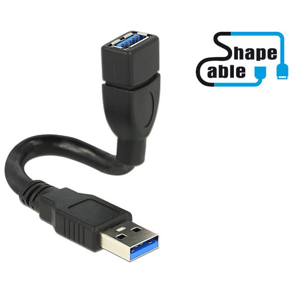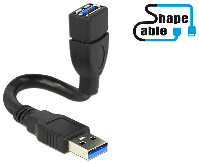 Αυτό το καλώδιο σάς επιτρέπει να επεκτείνετε τη σύνδεσή σας USB 3.0 κατά 15 cm και μπορεί να χρησιμοποιηθεί για τη σύνδεση διάφορων συσκευών. Λόγω του σχήματος που είναι ενσωματωμένο στο καλώδιο, το καλώδιο μπορεί να λυγίσει σε οποιαδήποτε μορφή και στη συνέχεια να διατηρήσει το σχήμα του. Αυτό μπορεί να χρησιμοποιηθεί, για παράδειγμα, για να τοποθετήσετε ένα ασύρματο USB stick στη βέλτιστη θέση για λήψη.