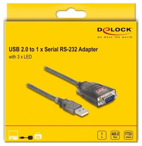 Προσαρμογέας USB Delock DELOCK Προσαρμογέας USB 2.0 Τύπου-A > Σειριακό RS-232 D-Sub 9 Pin St