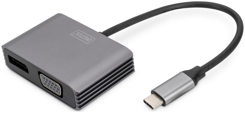 Μετάδοση σημάτων βίντεο και ήχου από τη θύρα USB-C™ στη διεπαφή DisplayPort ή VGA σε αναλύσεις έως 4K Ultra HD - Προσαρμογέας γραφικών Universal USB-C™ με έξοδο DisplayPort και VGA - Πλήρης ανάλυση 4K στα 30 Hz - Ενσωματωμένη μετάδοση ήχου για μια εμπειρία ακρόασης σε ποιότητα Dolby Surround (εκτός VGA) - Περίβλημα κατασκευασμένο από αλουμίνιο υψηλής ποιότητας - Τροφοδοσία μέσω θύρας USB-C™ - Plug & Play - δεν απαιτεί πρόσθετη εγκατάσταση προγράμματος οδήγησης Χρησιμοποιώντας το καλώδιο προσαρμογέα DIGITUS® USB-C™ σε DisplayPort + VGA, μπορείτε να συνδέσετε μια οθόνη, έναν προβολέα ή μια τηλεόραση με υποδοχή DisplayPort ή VGA στη διεπαφή USB-C™ ενός φορητού υπολογιστή ή tablet. Δεν χρειάζονται πρόσθετοι προσαρμογείς. Ανάλογα με τη συσκευή πηγής, αυτό το καλώδιο υποστηρίζει αναλύσεις έως και 4K/30 Hz. Χάρη στο Plug and Play, δεν χρειάζεται να εγκαταστήσετε προγράμματα οδήγησης ή να εισάγετε ρυθμίσεις - λειτουργεί αμέσως μετά τη σύνδεση του καλωδίου δικτύου. Εξοικονομήστε επιπλέον προσαρμογείς ή μετατροπείς και χρησιμοποιήστε το καλώδιο προσαρμογέα DIGITUS® USB-C™ σε DisplayPort + VGA. • Ανάλυση 4K Ultra HD (UHD), 4096 x 2160p / 30 Hz • Η τροφοδοσία παρέχεται μέσω της διεπαφής USB-C™ που είναι ενσωματωμένη στον προσαρμογέα • Υποστηρίζει HDCP 2.2 • Υποστηρίζει DisplayPort 1.4 • Υποστηριζόμενο βάθος χρώματος: 12 Bit • Υποστήριξη Lip-Sync ( συγχρονισμός) ήχος/βίντεο) • Υποστηρίζει 21:9 Cinemascope • Υποστηρίζει αναπαραγωγή αρχείων ήχου 8 καναλιών LPCM, 192 kHz, 24 bit • Υποστηρίζει DTS • Υποστηρίζει EDID 1.6 (αναγνώριση συσκευής) • Υγρασία λειτουργίας: 20% έως 80% RH • Θερμοκρασία λειτουργίας: -10°C ~ + 50° Γ • Υποστηριζόμενα λειτουργικά συστήματα: Android 10.0, Chrome OS 86.0, macOS 11.0.1, Windows 8.1, Linux 5.4, iPad Pro (3ης γενιάς) ή νεότερη έκδοση • Κατάλληλο για υπολογιστές ή φορητούς υπολογιστές με θύρα USB-C™ • Υψηλής ποιότητας περίβλημα αλουμινίου • Μήκος προσαρμογέα καλωδίου: 20 cm • Διαστάσεις : μήκος 200 x πλάτος 62 x ύψος 15,2 mm • Βάρος: 50 g • Χρώμα: μαύρο • Σημείωση κατασκευαστή: Η απόδοση εξόδου βίντεο εξαρτάται από την κάρτα γραφικών του φορητού υπολογιστή και τη συνδεδεμένη οθόνη. Ορισμένες οθόνες περιορίζουν επίσης τη διαθέσιμη ανάλυση. Μια συσκευή εξοπλισμένη με USB-C™ πρέπει να υποστηρίζει τη λειτουργία βίντεο DisplayPort™ (Λειτουργία DP Alt) για να είναι συμβατή με αυτόν τον προσαρμογέα/μετατροπέα.