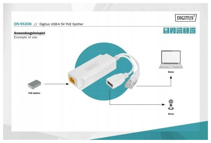 Προσαρμογέας USB Digitus DIGITUS Digitus USB-A 5V PoE Splitter