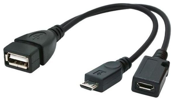 Καλώδιο μήκους 0,15 μέτρων με βύσματα: 1x θηλυκό USB τύπου Α 1x USB micro-B θηλυκό 1x micro-USB τύπου Β αρσενικό{Χρώμα}Μαύρο