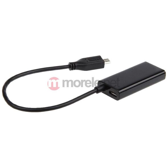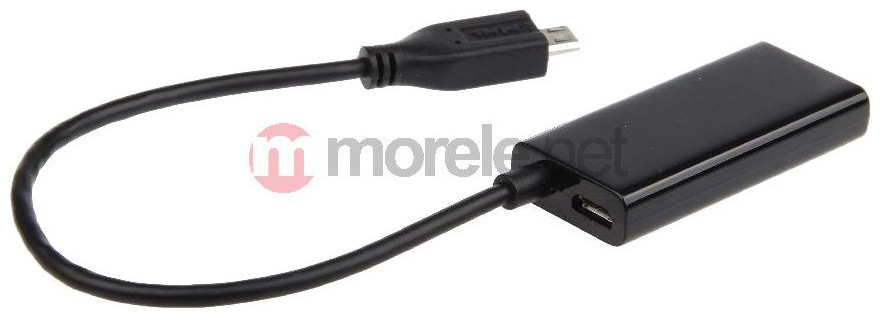 Το MHL είναι μια διεπαφή ήχου-βίντεο HD που επιτρέπει τη σύνδεση κινητών συσκευών (smartphone, tablet) με δέκτες τηλεόρασης. Αυτός ο προσαρμογέας MHL μετατρέπει μια θύρα micro USB σε θύρα HDMI για να απολαύσετε το περιεχόμενο του τηλεφώνου σας (βιβλιοθήκη ήχου-βίντεο). Όταν συνδέετε ποντίκι και πληκτρολόγιο μέσω Bluetooth, μπορείτε να μετατρέψετε μια συνηθισμένη τηλεόραση σε κέντρο οικιακής ψυχαγωγίας με πρόσβαση στο Διαδίκτυο. Ο προσαρμογέας παραμένει σε αναμονή χωρίς να χρειάζεται πρόσθετη τροφοδοσία. EAN: 8716309078719 Εγγύηση: 24 μήνες Κωδικός προμηθευτή: A-MHL-002 Μήκος καλωδίου: 16 cm Εφαρμογή: Υποδοχές υπολογιστή #1: Αρσενικές υποδοχές USB Micro-B #2: Θηλυκό USB Micro-B Άλλες παράμετροι: - Διεπαφή: MHL v. .1.0- Εύρος ζώνης: 25 - 75 MHz- Υποδοχές: micro-USB (είσοδος), HDMI (έξοδος), micro USB (τροφοδοσία)- Βίντεο: 1080p HD- Ήχος: 8 καναλιών (π.χ. surround 7.1) ψηφιακός ήχος- Τροφοδοσία ρεύματος : 5V DC μέγιστο 0,1 A από micro USB Διαστάσεις: 47 x 42 x 14 mm. Βάρος: 43 g Χρώμα: Μαύρο{Angle Plug} Αρ. {Angle Plug} Αρ. {Angle Plug} Αρ. {USB connector standard} 2.0 . {USB connector standard} 2.0 . {USB connector standard} 2.0 . {Χρώμα} Μαύρο. {Χρώμα} Μαύρο. {Χρώμα} Μαύρο. {Τύπος βυσμάτων} Βύσμα - Πρίζα. {Τύπος βυσμάτων} Βύσμα - Πρίζα. {Τύπος βυσμάτων} Βύσμα - Πρίζα. {Τύπος υποδοχών} microUSB - HDMI + microUSB. {Τύπος υποδοχών} microUSB - HDMI + microUSB. {Τύπος υποδοχών} microUSB - HDMI + microUSB. {Type} Προσαρμογέας . {Type} Προσαρμογέας . {Type} Προσαρμογέας . {Χρήση} TELE . {Χρήση} TELE . {Application} TELE