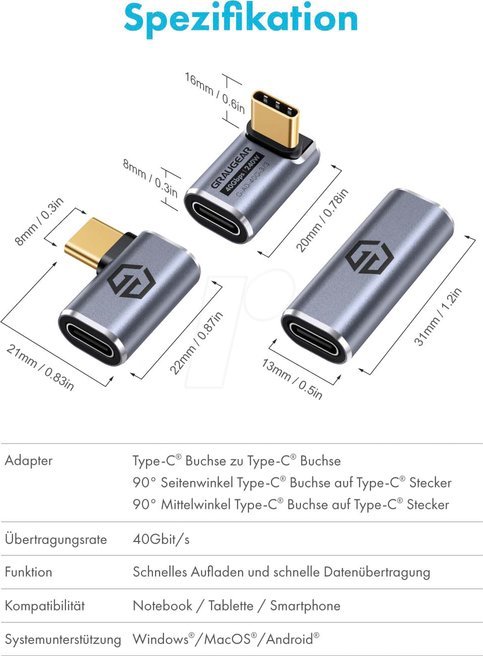 Προσαρμογέας USB Graugear GRAUGEAR 40Gbps USB-C Προσαρμογέας Αλουμινίου Σετ 3 Τεμαχίων