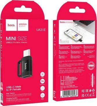 Προσαρμογέας USB Hoco HOCO προσαρμογέας OTG Τύπου C (αρσενικό) σε Lightning (θηλυκό) 3A UA31E μαύρο