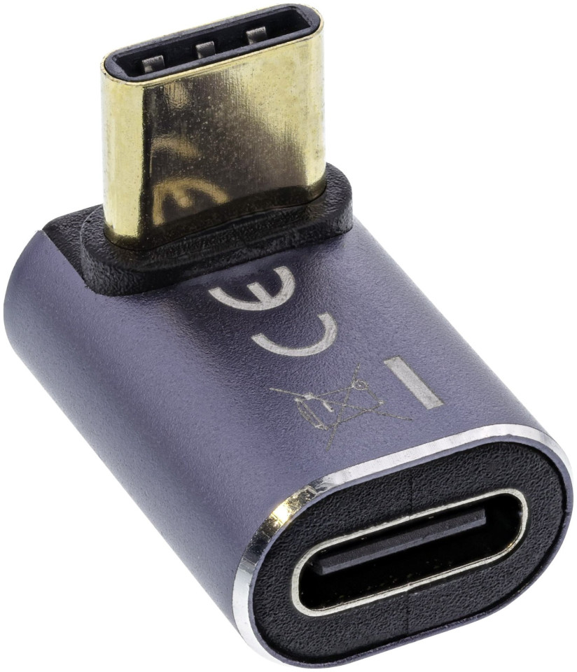 Προσαρμογέας USB InLine InLine® USB4 Προσαρμογέας, USB Type-C αρσενικό/θηλυκό πάνω/κάτω γωνιακός, αλουμίνιο, γκρι