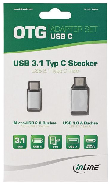 Σετ αντάπτορες InLine USB Type-C, γυναικείο σε αρσενικό σε micro-USB ή θηλυκό προσαρμογέα USB 3.0.0 Το σετ προσαρμογέων της γερμανικής μάρκας InLine αποτελείται από 2 προσαρμογείς OTG. Σας επιτρέπει να συνδέσετε συσκευές USB A ή Micro-USB σε συσκευές USB 3.1 με θύρα USB Type C Αυτός ο προσαρμογέας μετατρέπει τη σύνδεσή σας USB 3.1 Type C απλά σε USB 2.0 Micro-B και USB 3.0 A Female. Το InLine είναι ένα διάσημο προϊόν υψηλής ποιότητας. ποιοτική ευρωπαϊκή μάρκα που ειδικεύεται στον τομέα των προσαρμογέων και προσαρμογών από το 1991. Η InLine ήταν η πρώτη στον κόσμο που παρουσίασε πολλούς τύπους προσαρμογέων χάρη στους οποίους μπορούμε να συνδέσουμε τη μια συσκευή στην άλλη χωρίς κανένα πρόβλημα. Το προϊόν που προσφέρεται στο κατάστημά μας υπόκειται επίσης σε γερμανικό ποιοτικό έλεγχο, επομένως είμαστε βέβαιοι από την αρχή ότι ο προσαρμογέας λειτουργεί, κάτι που δεν είναι πάντα στάνταρ με ανταγωνιστικούς προσαρμογείς, ειδικά λαμβάνοντας υπόψη ορισμένα σχόλια των χρηστών: 1 αρσενικό βύσμα τύπου C στο a Θηλυκό βύσμα USB 2.0 Micro-B Ταχύτητα μεταφοράς δεδομένων: 480 Mb/s Αλουμινένιο περίβλημα 1 Τύπος C σε USB 3.0 A Θηλυκός σύνδεσμος Ταχύτητα. Μεταφορά δεδομένων 5Gb/s Αλουμινένιο περίβλημα συμβατό με OTG{Angle Plug} Αρ. {Angle Plug} Αρ. {Angle Plug} Αρ. {Χρώμα} Λευκό. {Χρώμα} Λευκό. {Χρώμα} Λευκό. {Πρότυπο υποδοχής USB} 3.0 . {Πρότυπο υποδοχής USB} 3.0 . {Πρότυπο υποδοχής USB} 3.0 . {Τύπος υποδοχών} USB-C - microUSB. {Τύπος υποδοχών} USB-C - microUSB. {Τύπος υποδοχών} USB-C - microUSB. {Τύπος υποδοχών} USB-C - USB . {Τύπος υποδοχών} USB-C - USB . {Τύπος υποδοχών} USB-C - USB . {Τύπος βυσμάτων} Βύσμα - Πρίζα. {Τύπος βυσμάτων} Βύσμα - Πρίζα. {Τύπος βυσμάτων} Βύσμα - Πρίζα. {Type} Προσαρμογέας . {Type} Προσαρμογέας . {Type} Προσαρμογέας . {Χρήση} TELE . {Χρήση} TELE . {Application} TELE
