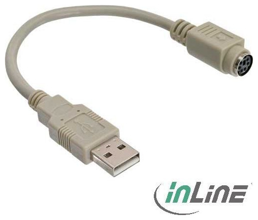 Καλώδιο προσαρμογέα USB InLine USB τύπου A αρσενικό - PS/2 θηλυκό Μήκος: 20 cm{Γωνιακό βύσμα} Αρ. {USB connector standard} 2.0 . {Χρώμα} Λευκό. {Τύπος υποδοχών} USB - PS/2. {Τύπος βυσμάτων} Βύσμα - Πρίζα. {Type} Προσαρμογέας . {Application} IT