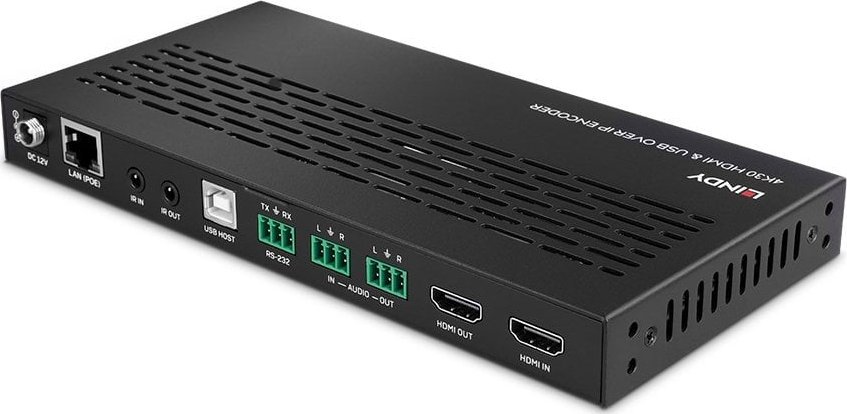 Lindy 38396. Μοντέλο: AV πομπός, Μέγιστη ανάλυση: 3840 x 2160 px, Υποστηριζόμενοι τύποι καλωδίων: Cat6. Τεχνολογία συνδεσιμότητας: Ενσύρματη, Υποστηριζόμενος τύπος USB: USB Type B, Διασύνδεση SCSI: RS-232. Τύπος τροφοδοσίας: DC, Τάση λειτουργίας: 12 V, Ρεύμα εξόδου: 1 A. Πλάτος προϊόντος: 204 mm, Βάθος προϊόντος: 134 mm, Ύψος προϊόντος: 21,5 mm. Ποσότητα ανά συσκευασία: 1 τεμ., Πλάτος συσκευασίας: 245 mm, Βάθος συσκευασίας: 185 mm
