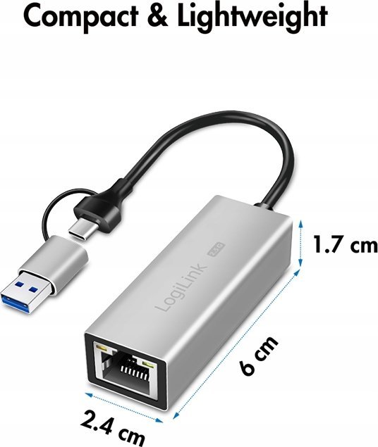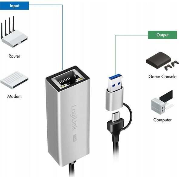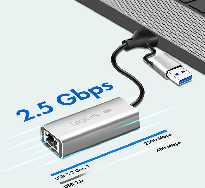 Προσαρμογέας USB LogiLink LogiLink USB-A/-C σε 2,5G Ethernet-Δικτυακός προσαρμογέας γκρι