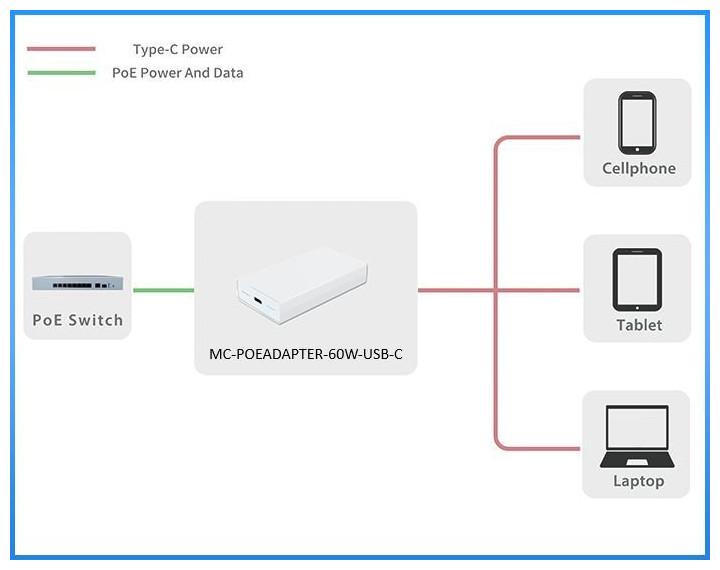 Προσαρμογέας USB MicroConnect Microconnect MC-POEADAPTER-60W-USB-C προσαρμογέας PoE Fast Ethernet 20 V