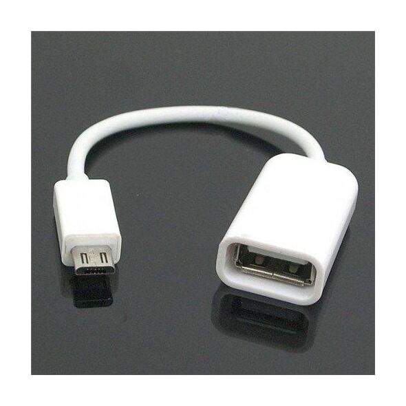 KABEL USB OTG MICRO USB Adapter microUSB - USB OTG. Dedykowany dla tabletów, smartfonów itp., które wspierają tryb USB OTG host. Pozwala na podłączenie urządzenia wyposażonego w standardowe złącze USB, takich jak myszka, klawiatura lub pendrive, który może służyć jako dodatkowa pamięć. Cechy produktu: - Wtyk microUSB - gniazdo USB A żeńskie - Wspiera tryb USB 2.0 - Długość przewodu: ok. 12 cm - Kolor: biały Zestaw zawiera: 1 x Kabel USB OTG Micro