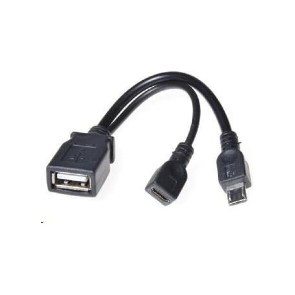 Ένας αντάπτορας με τον οποίο μπορούμε να συνδέσουμε πληκτρολόγιο, ποντίκι, μνήμη flash ή ακόμα και εξωτερικό δίσκο σε τηλέφωνο ή tablet που υποστηρίζει OTG. Ο προσαρμογέας διαθέτει 3 υποδοχές: - Micro USB αρσενικό για σύνδεση με το τηλέφωνο - Micro USB θηλυκό για σύνδεση ρεύματος - USB τύπου A για σύνδεση μνήμης flash, πληκτρολογίου, ποντικιού κ.λπ.{Angle Plug} Αρ. {USB connector standard} 2.0 . {Χρώμα} Μαύρο. {Τύπος βυσμάτων} Βύσμα - Πρίζα. {Type of connectors} microUSB - USB. {Type} Προσαρμογέας . {Application} TELE