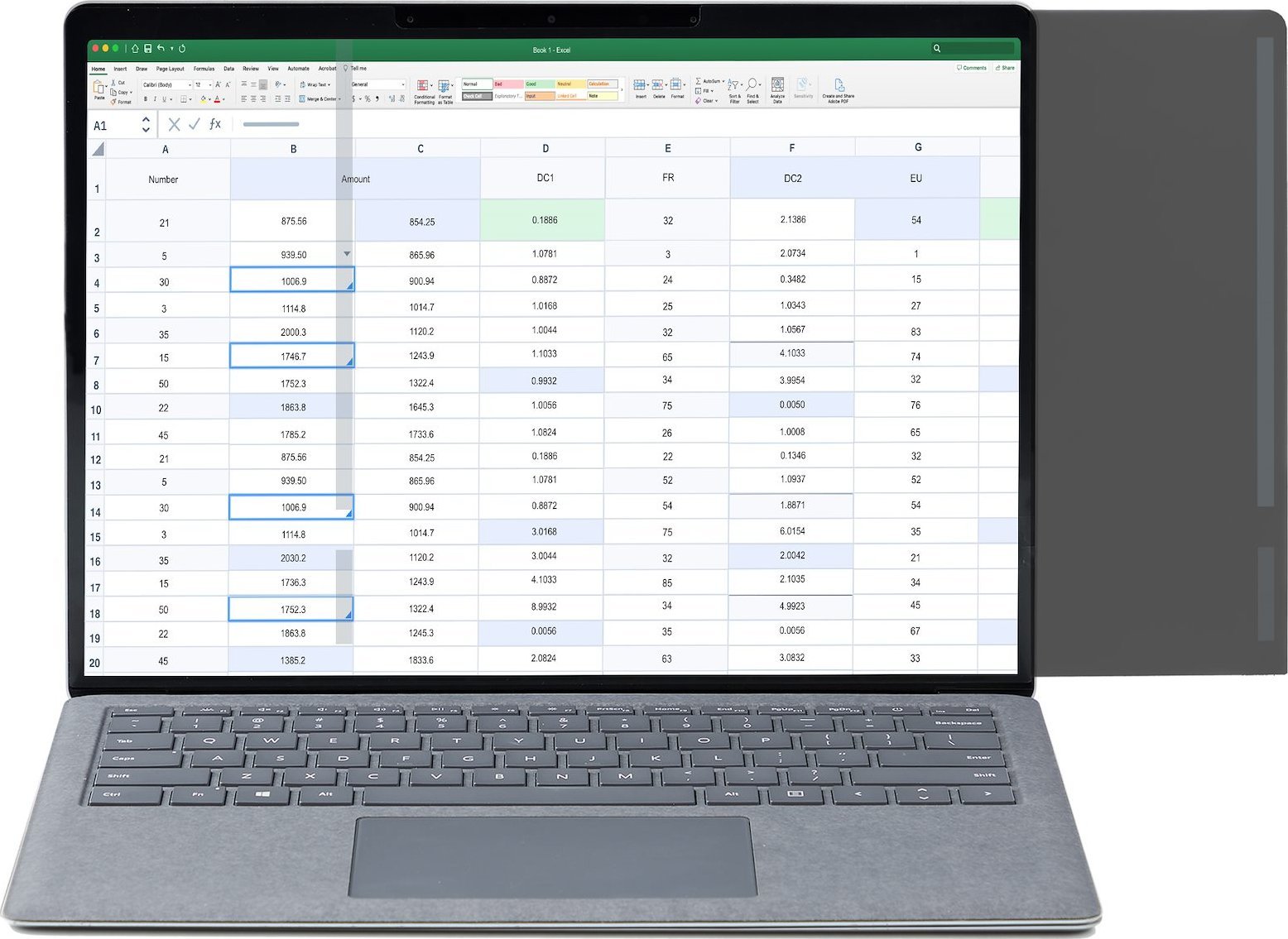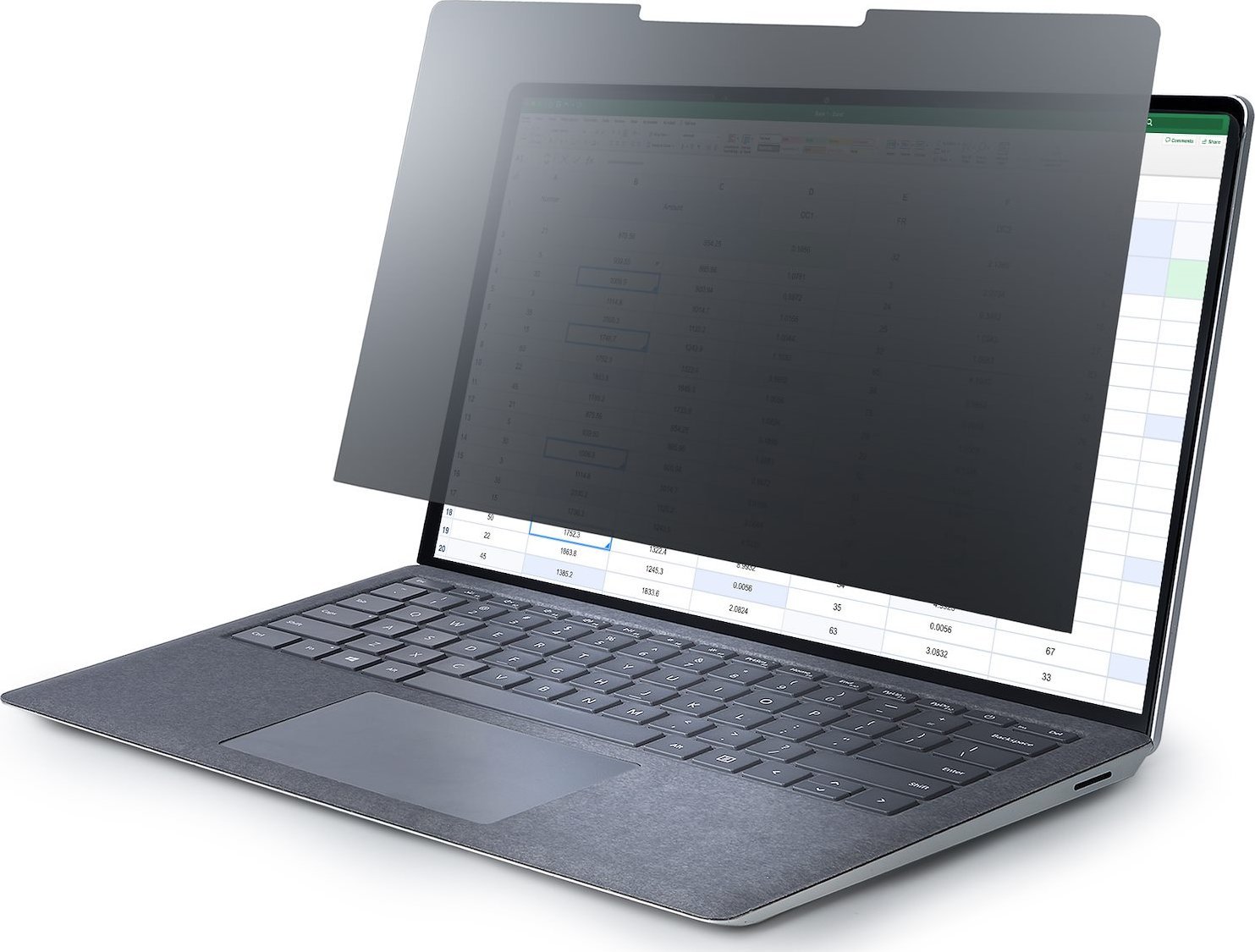 StarTech.com 135S-PRIVACY-SCREEN. Μέγιστο μέγεθος οθόνης: 34,3 cm (13,5"). Κατάλληλο για: Laptop, Μοντέλο: Φίλτρο απορρήτου οθόνης χωρίς πλαίσιο Φινίρισμα επιφάνειας: Ματ, Μετάδοση φωτός: 60%, Περιορισμοί γωνίας θέασης: 30° Βάρος προϊόντος: 27 g