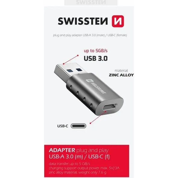 Προσαρμογέας USB Swissten Προσαρμογέας USB-A(M)/USB-C(F)
