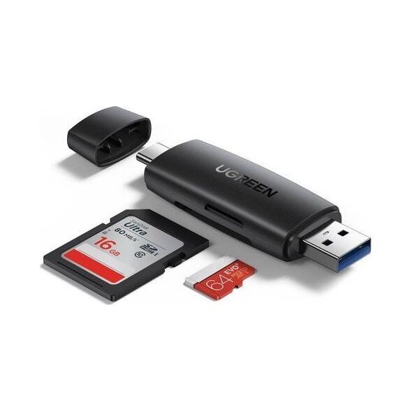 Adapter UGREEN CM304 umożliwia jednoczesny odczyt 2 kart pamięci o pojemności do 2 TB. Zapewnia niezawodną transmisję danych z prędkością do 5 Gbps. Wyróżnia go także szeroka kompatybilność, lekkość i poręczność. Możesz podłączyć go do komputera lub smartfona za pomocą USB lub USB-C.