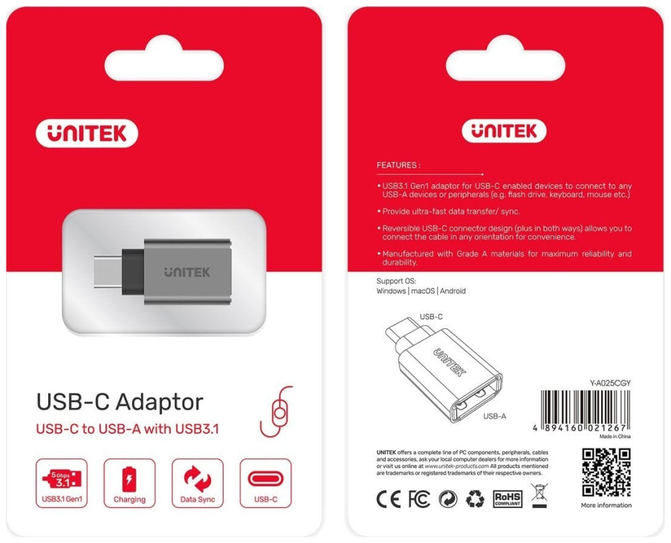Unitek USB-C - Προσαρμογέας USB Ασημί (Y-A025CGY)