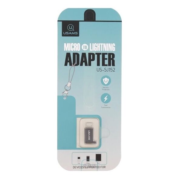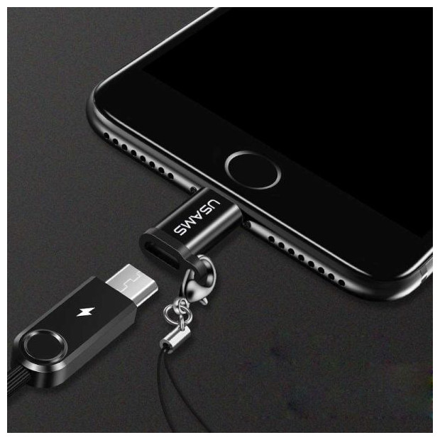 Adapter USB Usams Adapter US-SJ152 mircoUSB - Lightning ze smyczą, czarny-SJ152ML01