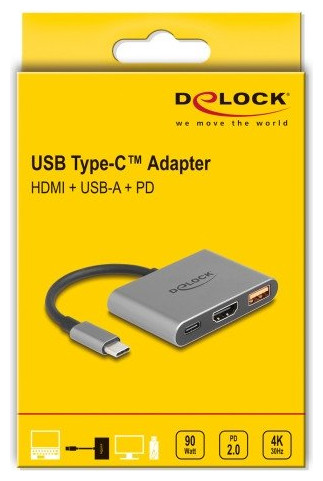 Προσαρμογέας DELOCK USB Type-C σε HDMI 4K 30 Hz με USB Type-A και USB Type-C PD 2.0 90 W