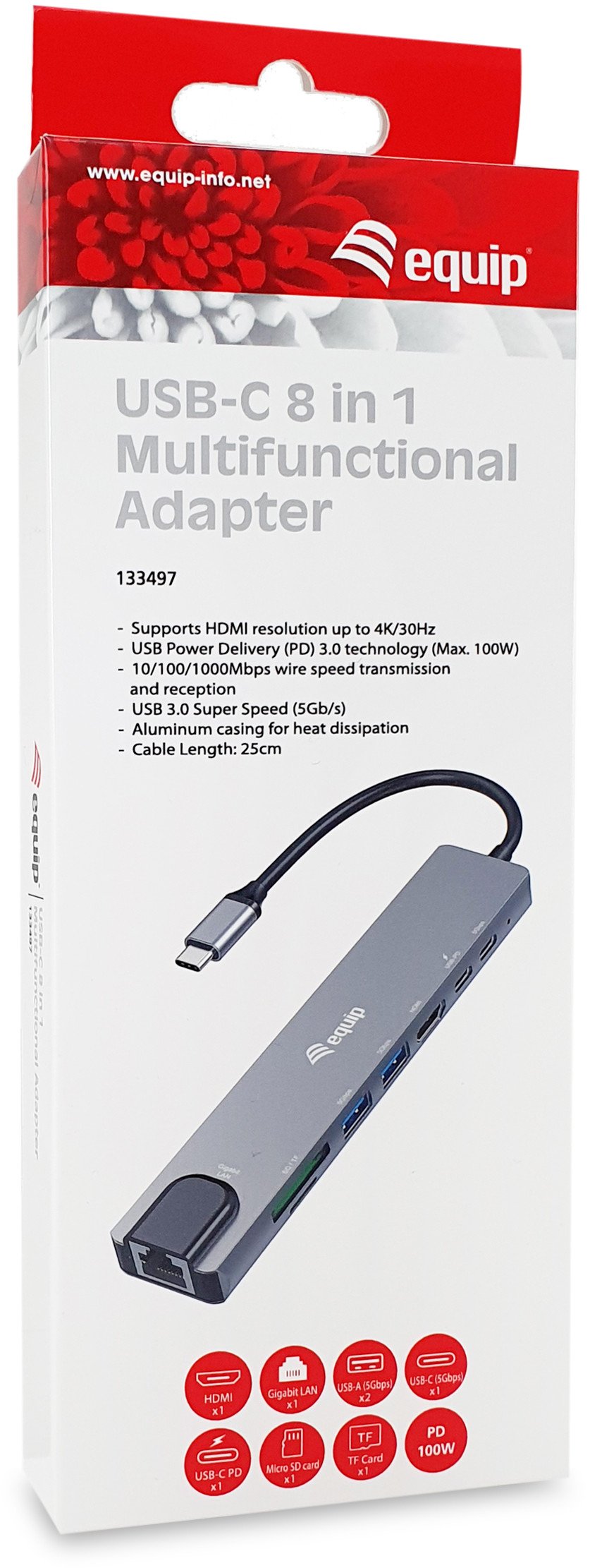 Equip Adapter USB-C -> HDMI.GbE.3xUSB3.2 Gen1.SD/TF.PD 100W