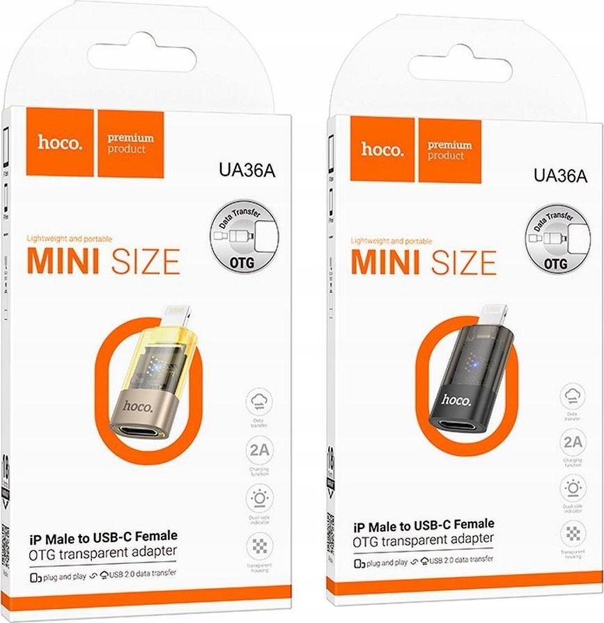 HOCO προσαρμογέας OTG Lightning (αρσενικό) σε Τύπου C (θηλυκό) UA36A διαφανές μαύρο