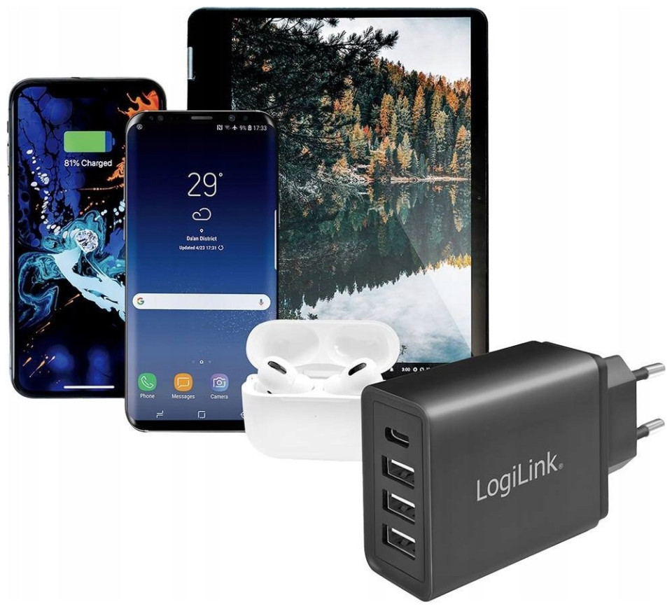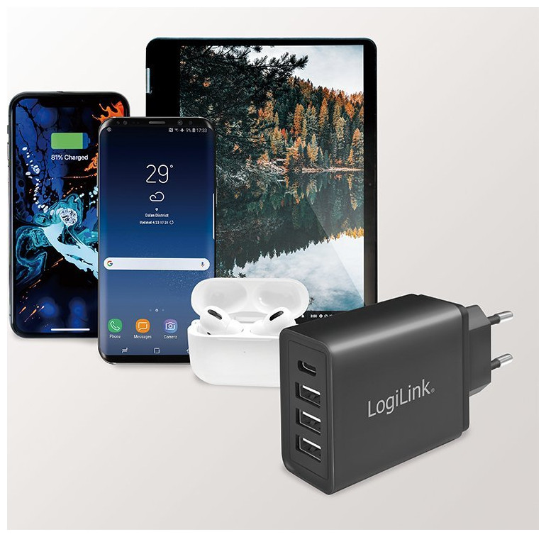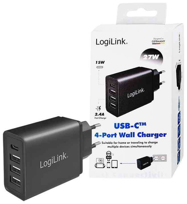 LogiLink PA0221 προσαρμογέας υποδοχής USB (3 x USB-A, 1 x USB-C) 27 W για smartphones/tablets/e-books κ.λπ. προστασία από υπερφόρτωση, υπερθέρμανση