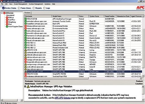 Zarządzaj szeroką gamą urządzeń APC, w tym: jednofazowymi i trójfazowymi zasilaczami UPS, jednostkami dystrybucji zasilania, urządzeniami chłodzącymi i środowiskowymi, a także innymi urządzeniami InfraStruXure® Manager.