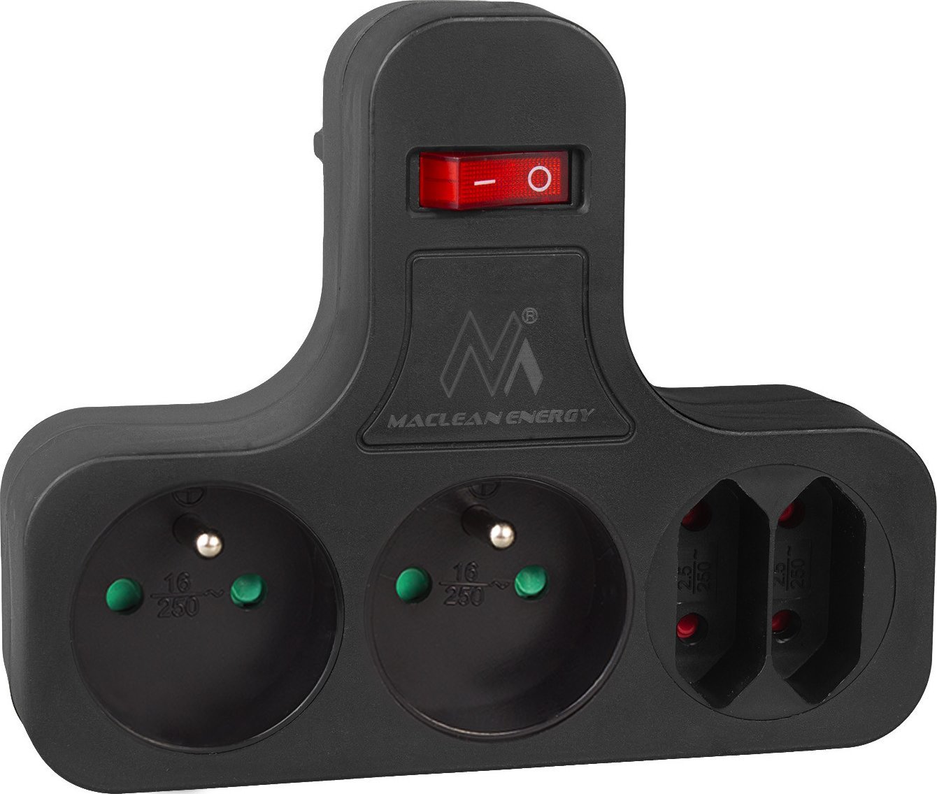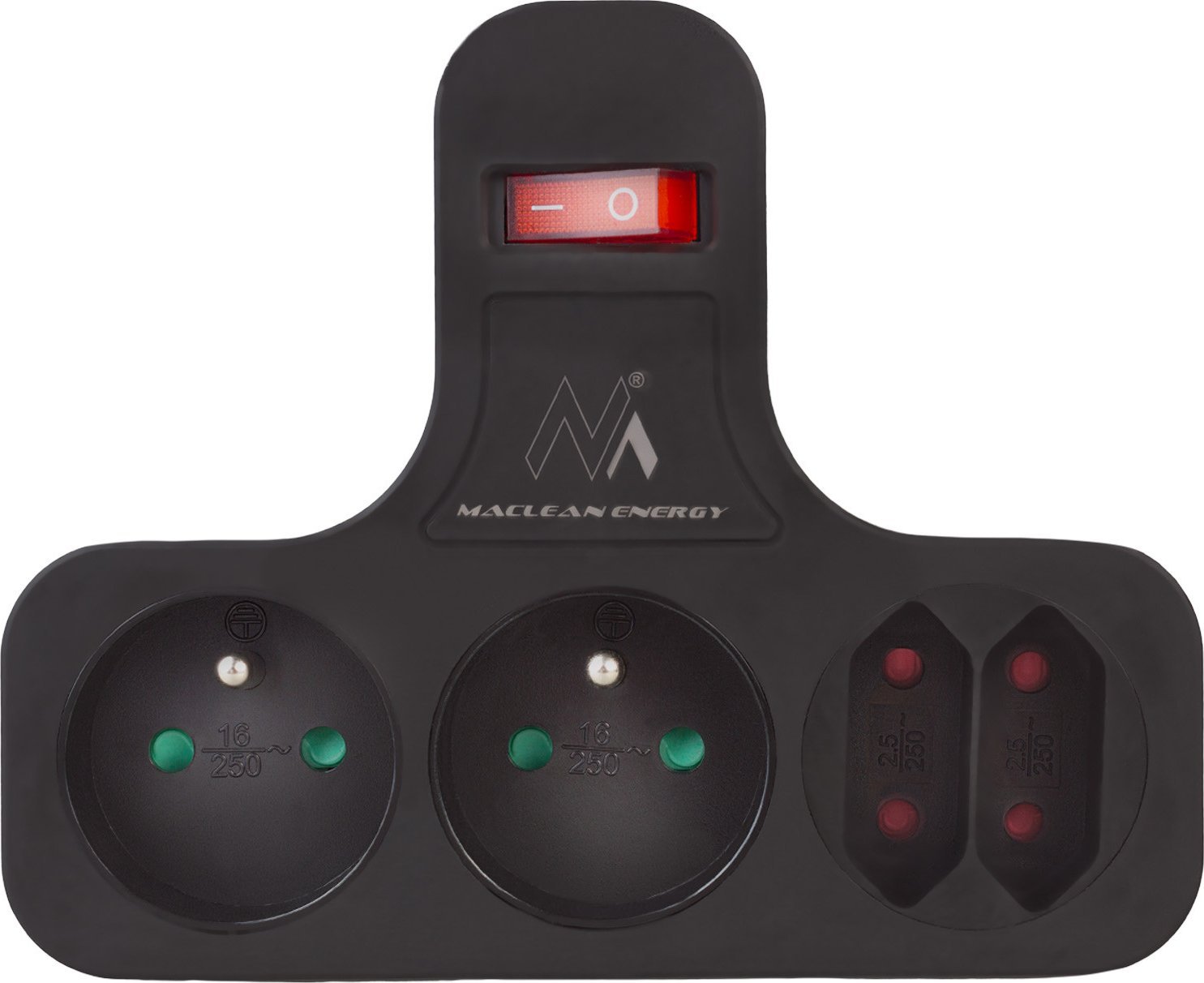 Πρίζα Maclean, τετραπλή με διακόπτη, σταθεροποιητικό πόδι, Τύπου E, 2x2,5A, 2x16A, MCE224 E/B