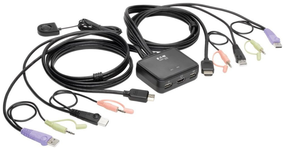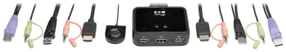 Διακόπτης Eaton Eaton Tripp Lite series 2-Port USB/HD Cable KVM Switch με Ήχο/Βίντεο, Καλώδια και Κοινή Χρήση Περιφερειακών USB - KVM-/Ήχος-/USB-Διακόπτης - 2 x KVM/Ήχος/USB - 1 τοπικός χρήστης - Επιτραπέζιος