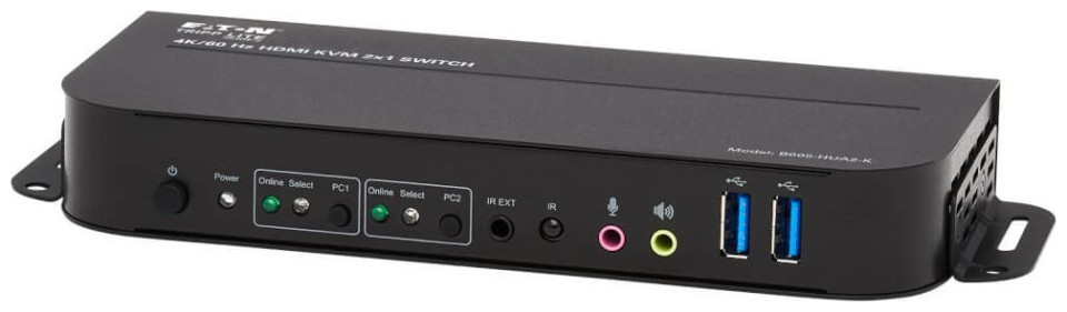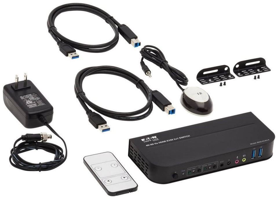 Διακόπτης Eaton Eaton Tripp Lite series HDMI KVM, 2-Port 4K 60Hz 4:4:4, HDR, HDCP 2.2 Support, IR Remote and USB Cables - KVM-/Audio-/USB-Switch - 2 x KVM/Audio/USB - 1 τοπικός χρήστης - Επιτραπέζιος
