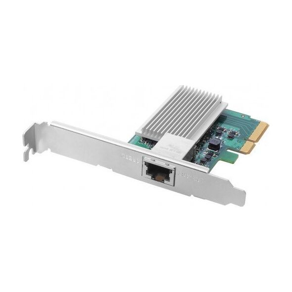 Asustor 10G PCI-E. Maksymalna szybkość przesyłania danych: 10000 Mbit/s, Typ interfejsu Ethernet LAN: Gigabit Ethernet, Obsługiwane produkty: AS7008T, AS7010T. Szerokość produktu: 130 mm, Głębokość produktu: 165 mm, Wysokość produktu: 26 mm